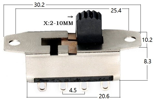 GD-SLIDE-2208D581. RATING Rated Value: 1.5A 3A 125V AC 2. Circuit circuit: 1P2T high-power toggle switch, two speed vertical sliding switch, two position high-power 3. Operating stroke stroke stroke: 2.2mm 4……Detailed >>